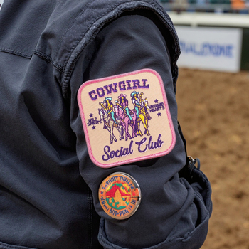 Toppe in Tessuto Twill Ecologiche Personalizzate con Motivo Cowgirl, Termoadesive con Ricamo e Adesivo o con Retro Cucibile